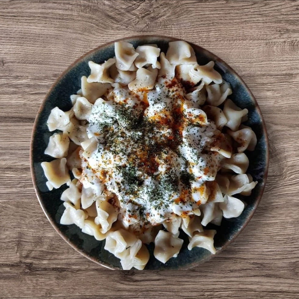 Klasik Türk Mantımız en taze malzemelerle yapılır ve en yüksek kaliteyi sağlamak için günlük olarak hazırlanır. Her bir lokma büyüklüğündeki köfte, kıyma veya kuzu eti, soğan ve geleneksel Türk baharatlarının lezzetli bir karışımıyla doldurulur ve lezzetli ve otantik bir tat yaratır. Hassas hamur elle açılır ve özenle doldurulur, ardından mükemmelliğe kadar kaynatılır. Gerçekten geleneksel bir Türk yemek deneyimi için bir kaşık kremalı yoğurt ve eritilmiş tereyağı ile servis edin. İster ana yemek ister meze olarak tüketin, klasik Türk Mantımız otantik Türk mutfağının zengin ve lezzetli tadına olan özleminizi kesinlikle tatmin edecektir.
